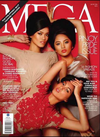 Pinay Supermodels Charo, Chat and Danica posing for the June edition of Mega Magazine aptly called the PINOY PRIDE ISSUE.