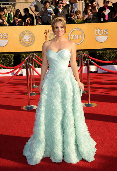 9. The Big Bang Theory starlet Kaley Cuoco in a strapless mint Romona Keveza gown – she just look amazing in this number!