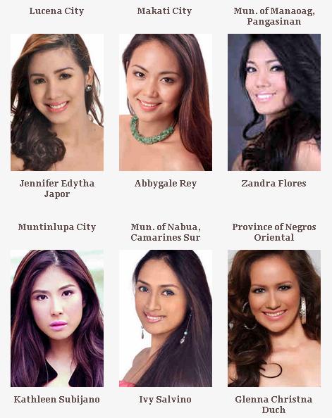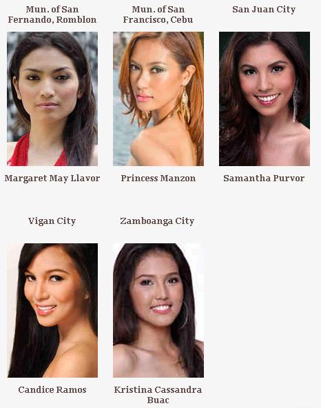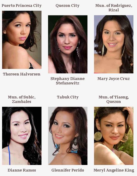 The other winners are Miss Philippines Air 2012 – Glennifer Perido (Tabuk City), Miss Philippines Water 2012 – Samantha Purvor (San Juan City), Miss Philippines Fire 2012 – Thoreen Halvorsen (Puerto Princesa City) and Miss Philippines Eco-Tourism 2012 – Candice Ramos (Vigan City)